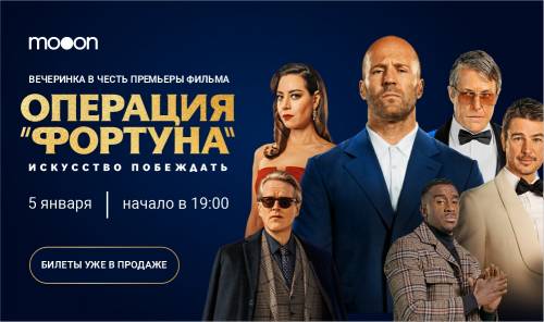 Вас ждёт яркая вечеринка с живой музыкой и вечерним дресс-кодом, звон бокалов шампанского и вспышки фотокамер, словом, всё, что позволит почувствовать себя гостем премии “Оскар”. И конечно, первым оценить долгожданную премьеру фильма неподражаемого Гая Ричи «Операция «Фортуна»: Искусство побеждать» с Джейсон Стэйтемем в главной роли.