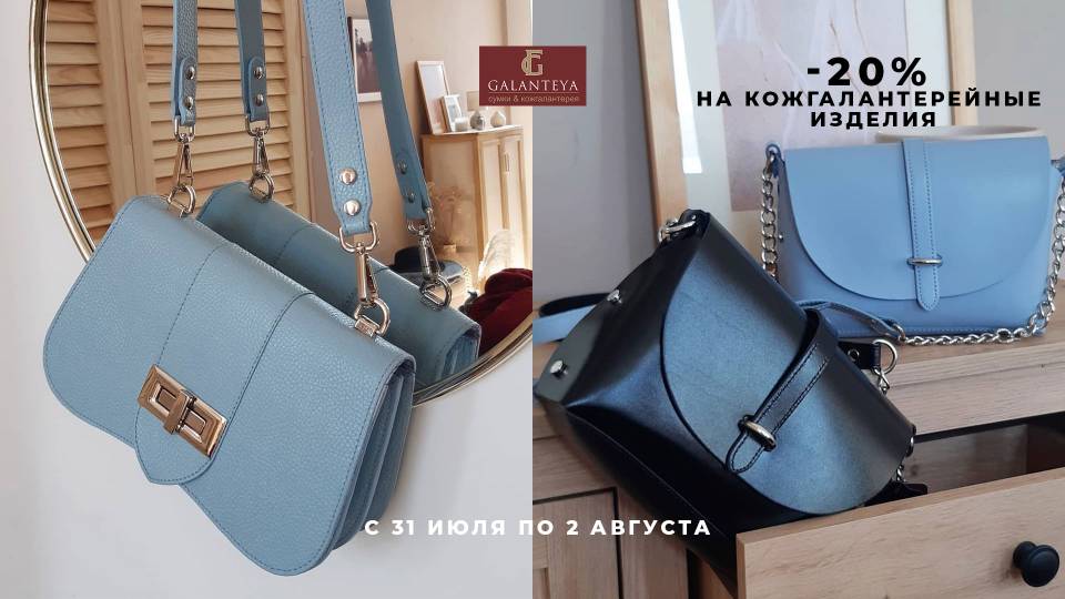 В период с 31 июля по 2 августа включительно в GALANTEYA действует скидка в размере 20% на кожгалантерейные изделия.