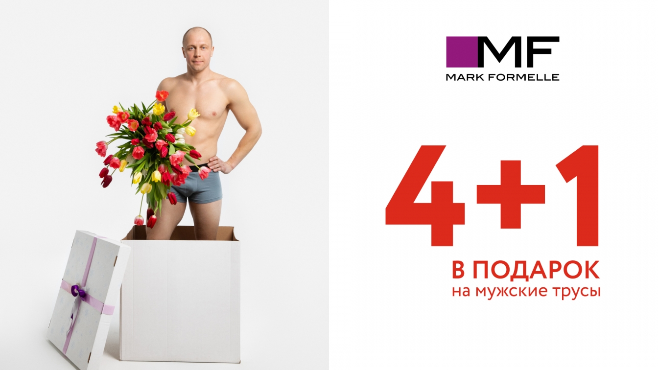 Только до 29 мая в фирменных магазинах Mark Formelle и интернет-магазине markformelle.com действует акция «4+1 в подарок» на мужские трусы: выбирайте пять товаров, платите за четыре!
