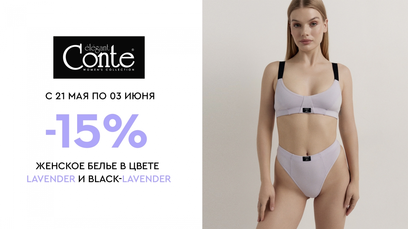 С 21 мая по 3 июня в фирменных магазинах Conte стартует акция -15% на женское белье в цвете lavender и black-lavender*