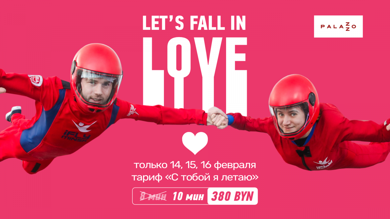 Бабочки в животе и взгляд полный восторга, встречающийся со взглядом вашей второй половинки. Это не просто полёт – это погружение в мир, где время останавливается, а чувства становятся ярче и насыщеннее. 💕 14-16 февраля в iFLY Minsk будет работать специальная фотозона, где каждый сможет сделать себе романтичное фото на память.